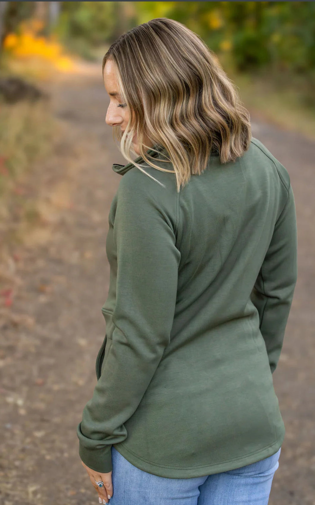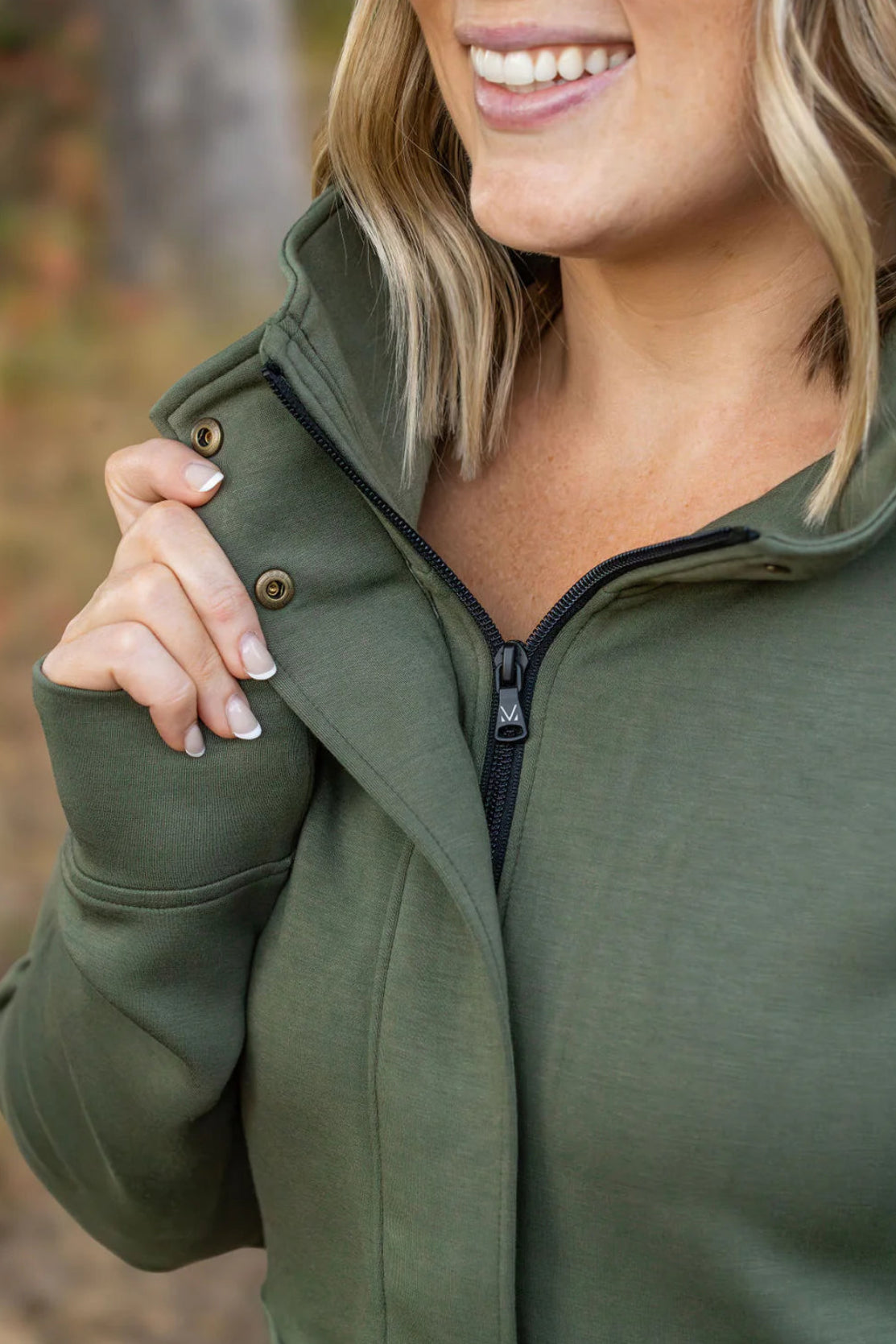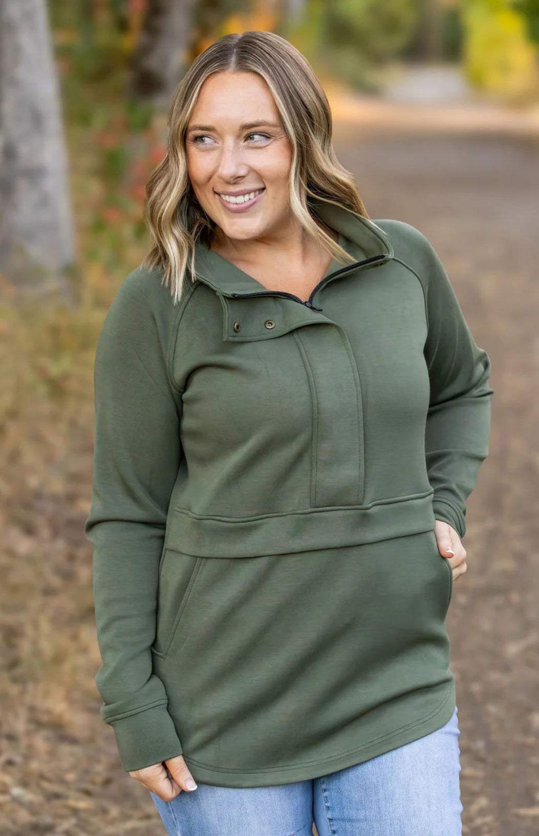 Unleash your playful side with the Mia Scuba Halfzip by Michelle Mae! Made from scuba fabric, this pullover features a halfzip, pockets, and two snap buttons at the collar for extra warmth. With a curved hemline and cuff sleeves, it's perfect for adding a touch of quirk to any outfit. (And yes, it's as fun to wear as it sounds!)