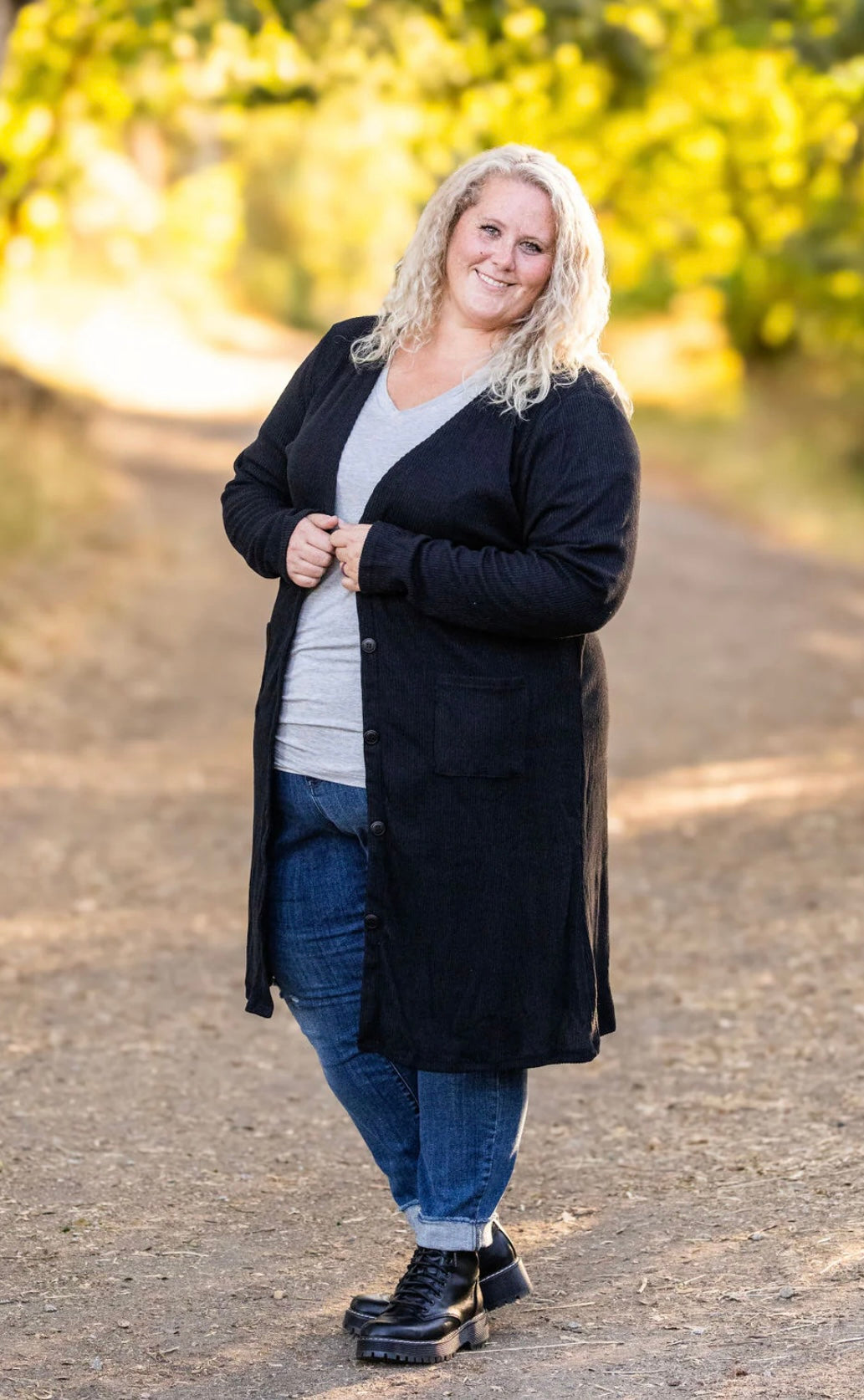 The Colbie Cardigan is going to become your new go-to item to pair with everything in your closet! It comes in this pretty light sage color. It’s longer than a traditional cardigan, but not quite full-length like a duster. We think this length is perfect! Plus, it’s so soft and has pockets, you'll never want to take it off! This knit fabric is crazy soft and cozy!